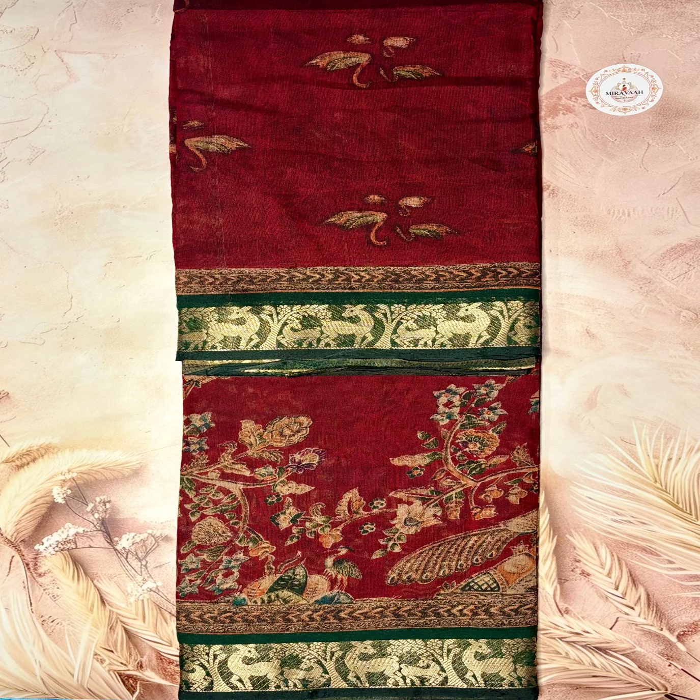 Surkh Gul Red Premium Blended Malchanderi Saree