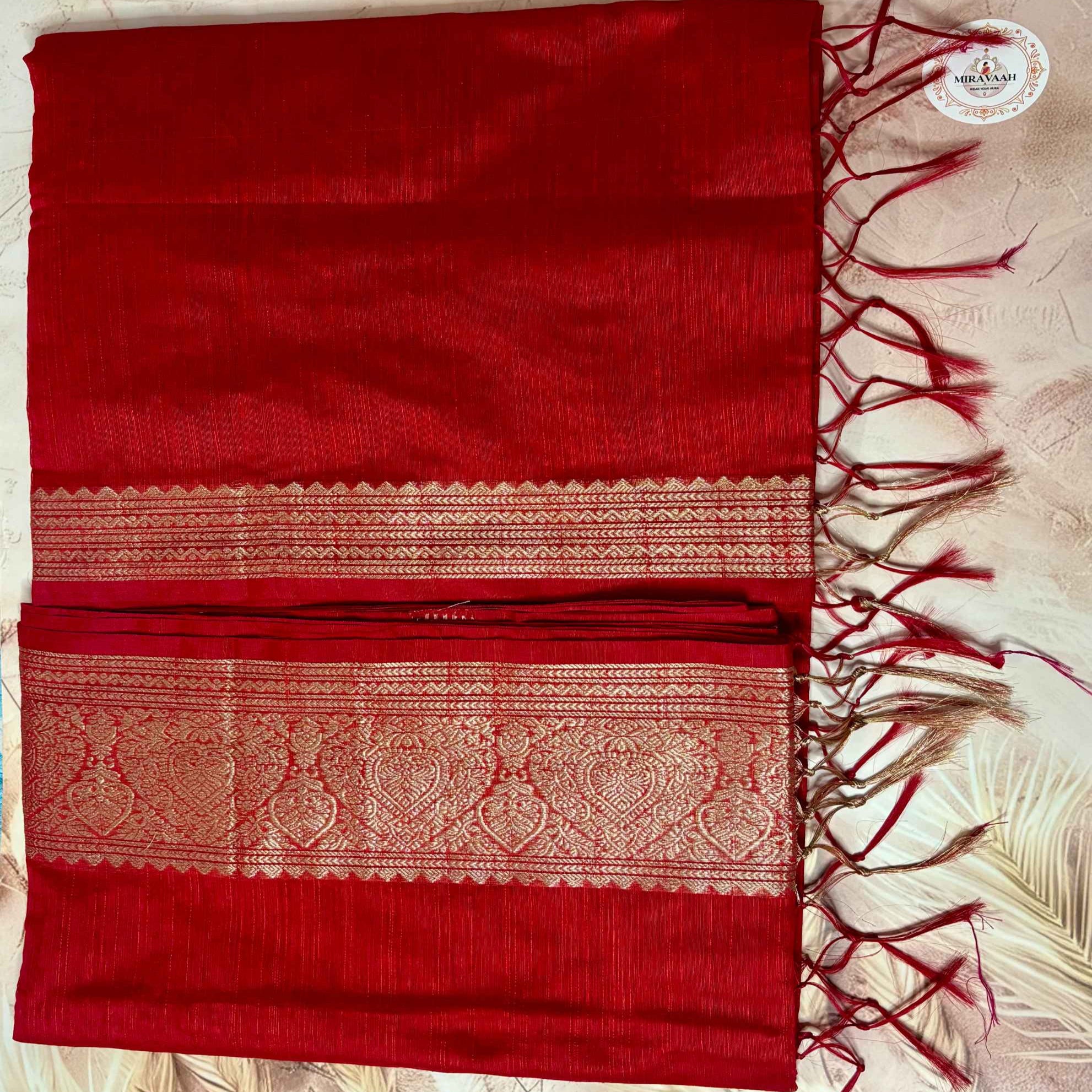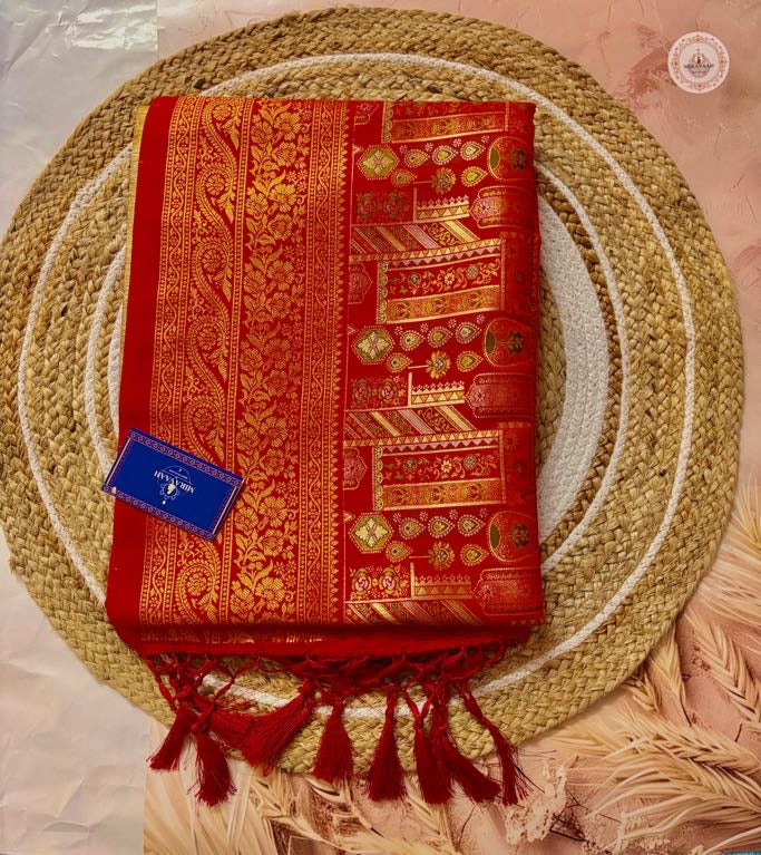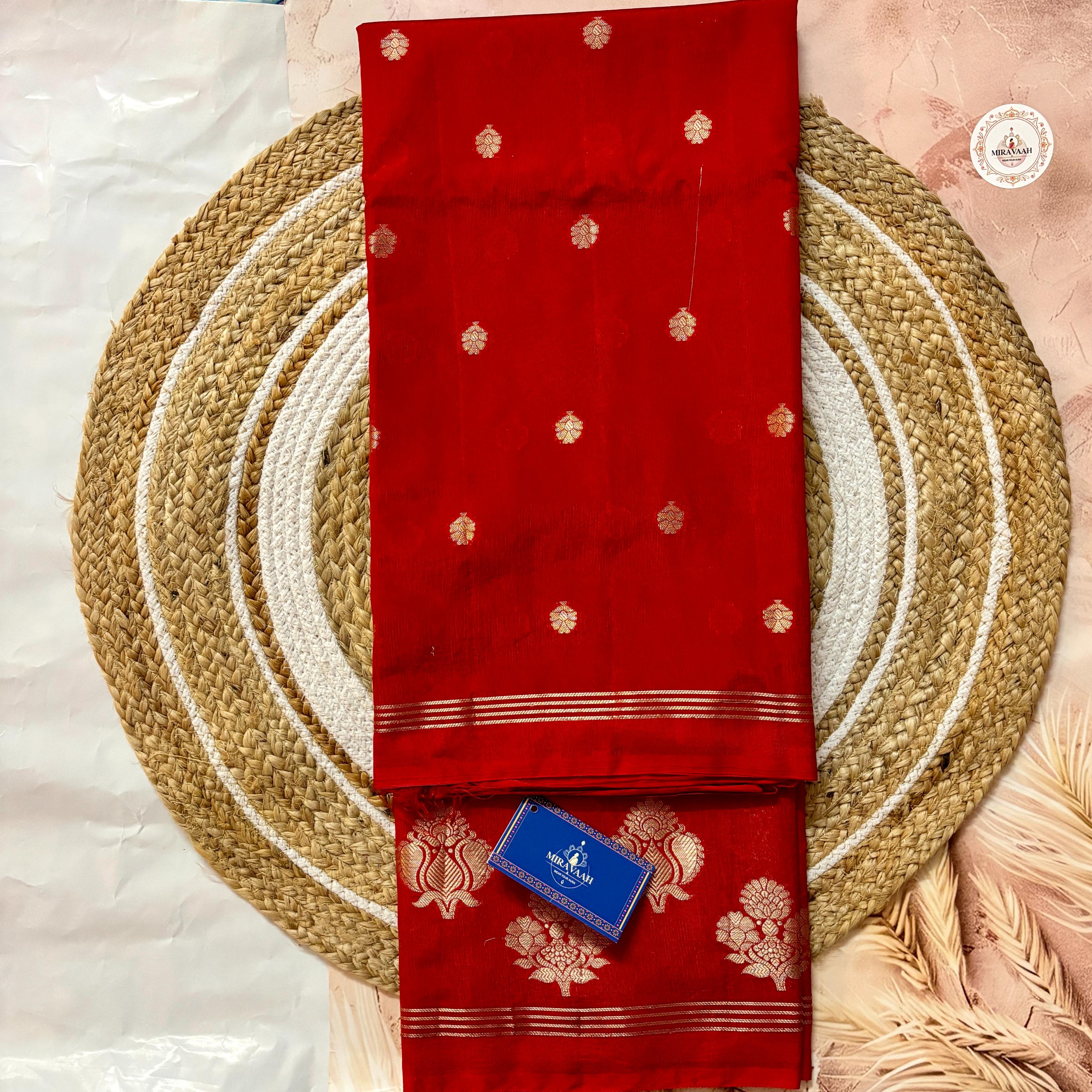 Surkh Red Premium Katan Mashru Silk Saree