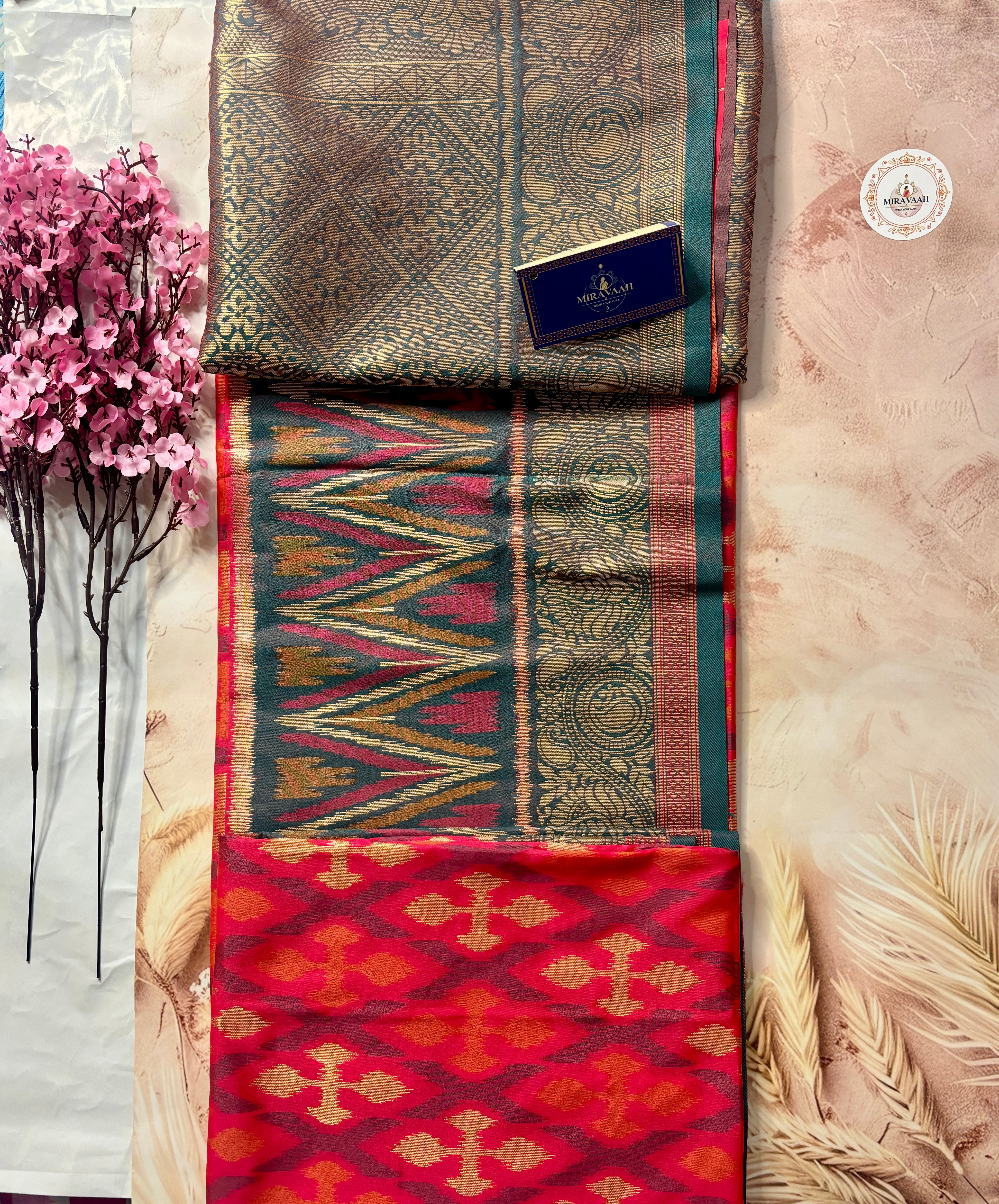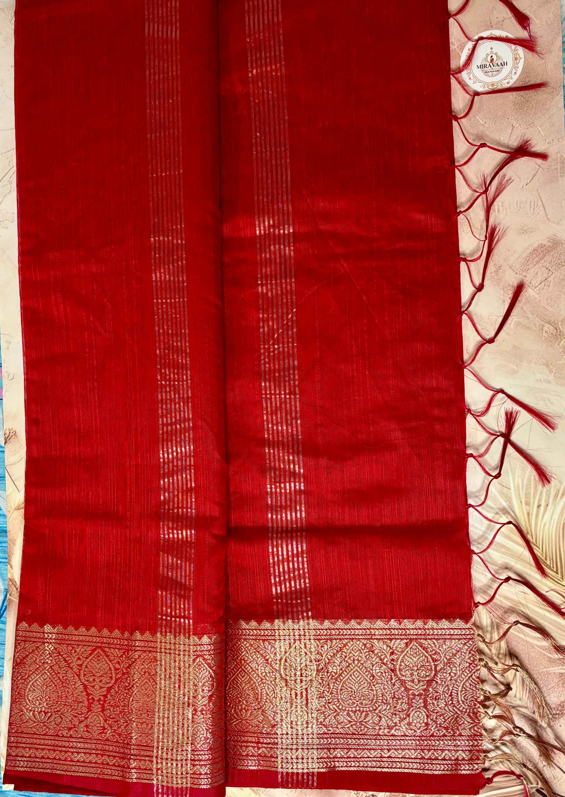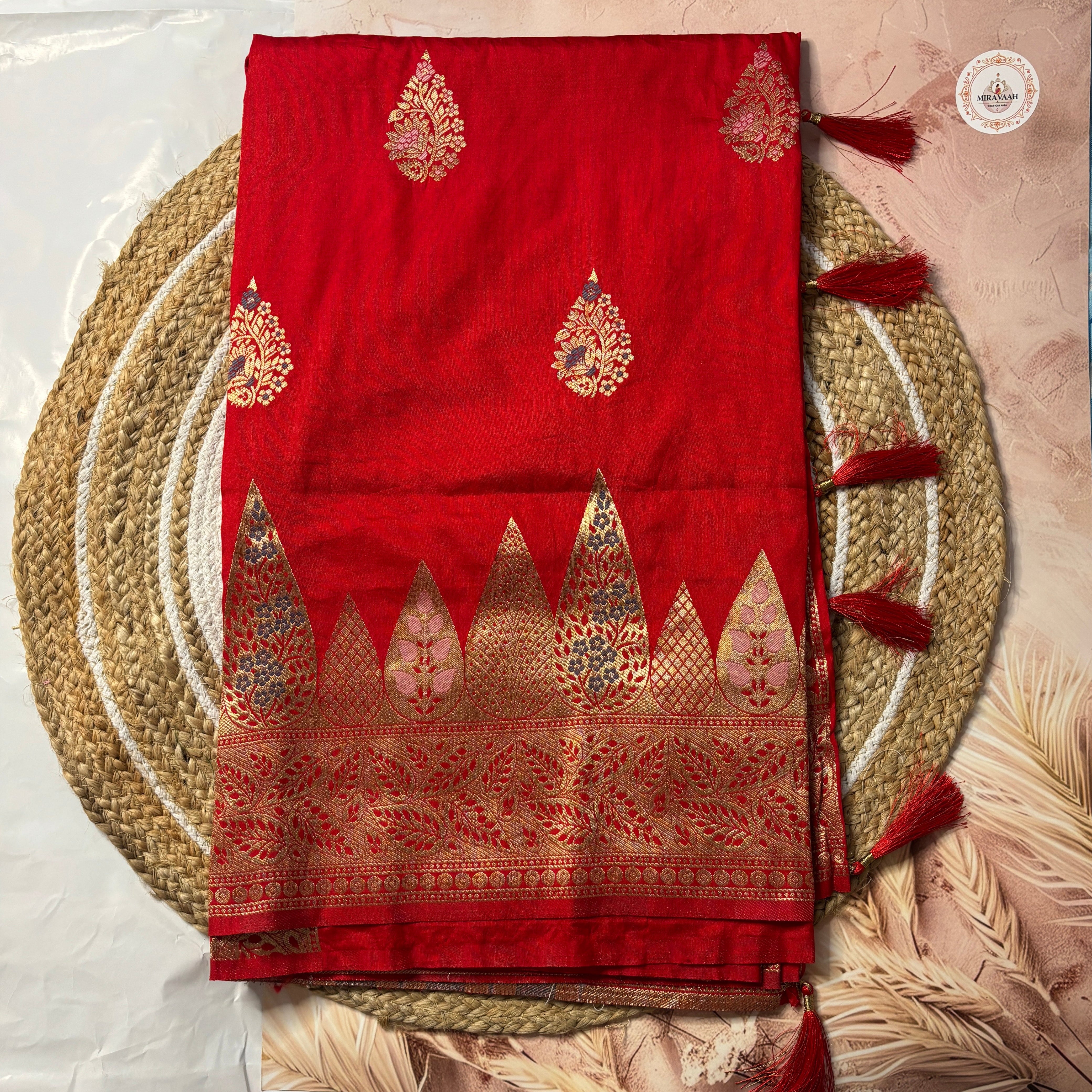 Surkh Red Premium Katan Mashru Silk Saree