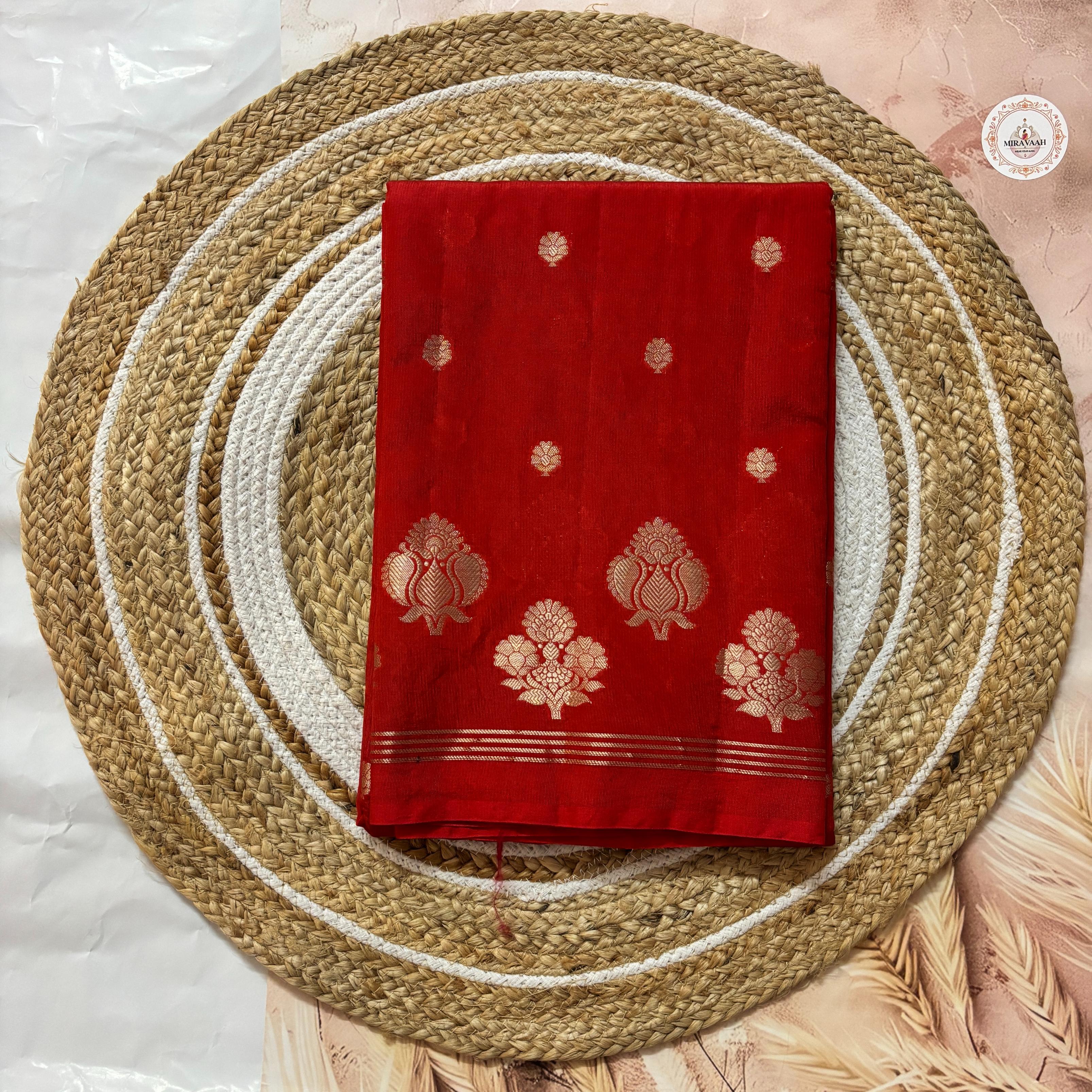 Surkh Gul Red Premium Blended Malchanderi Saree