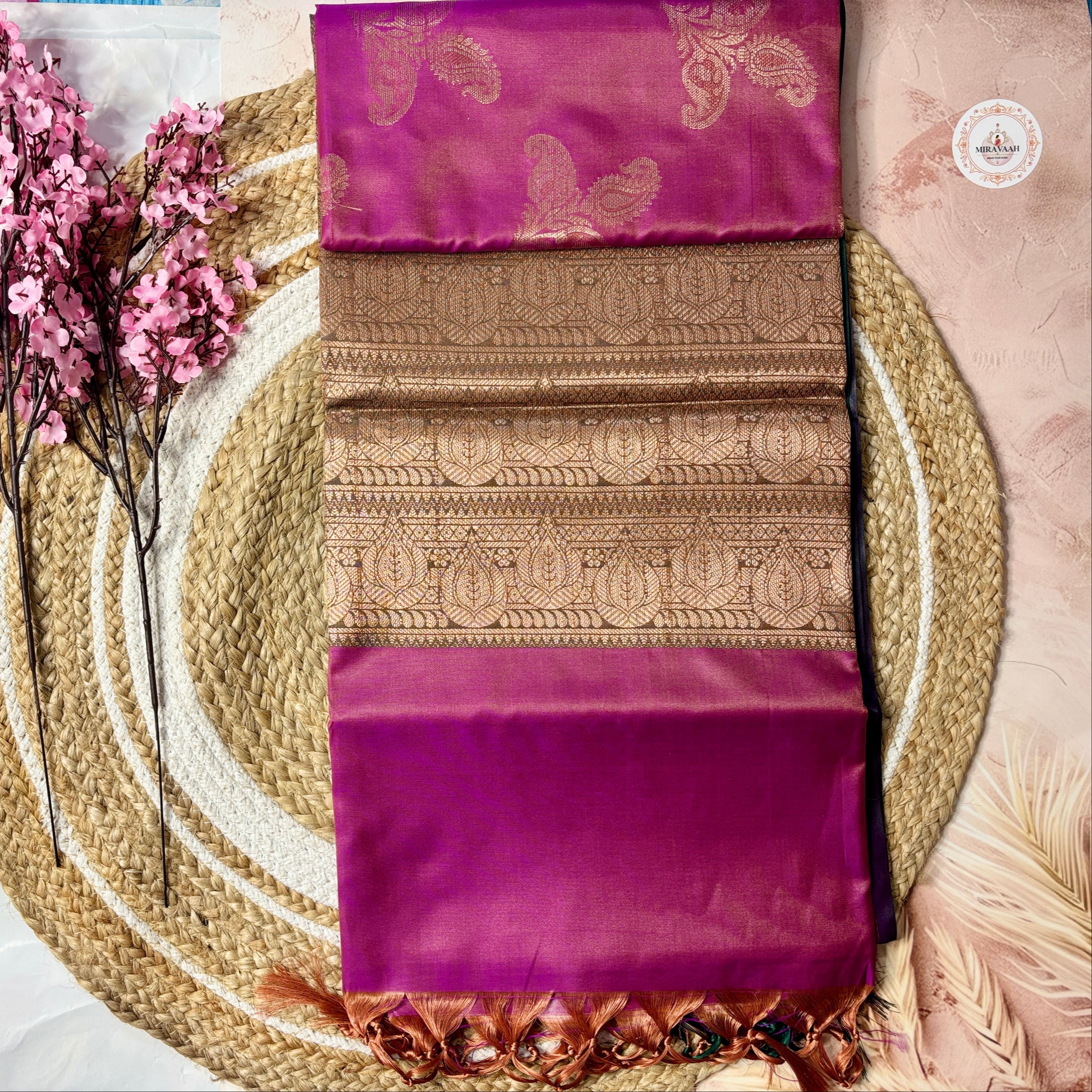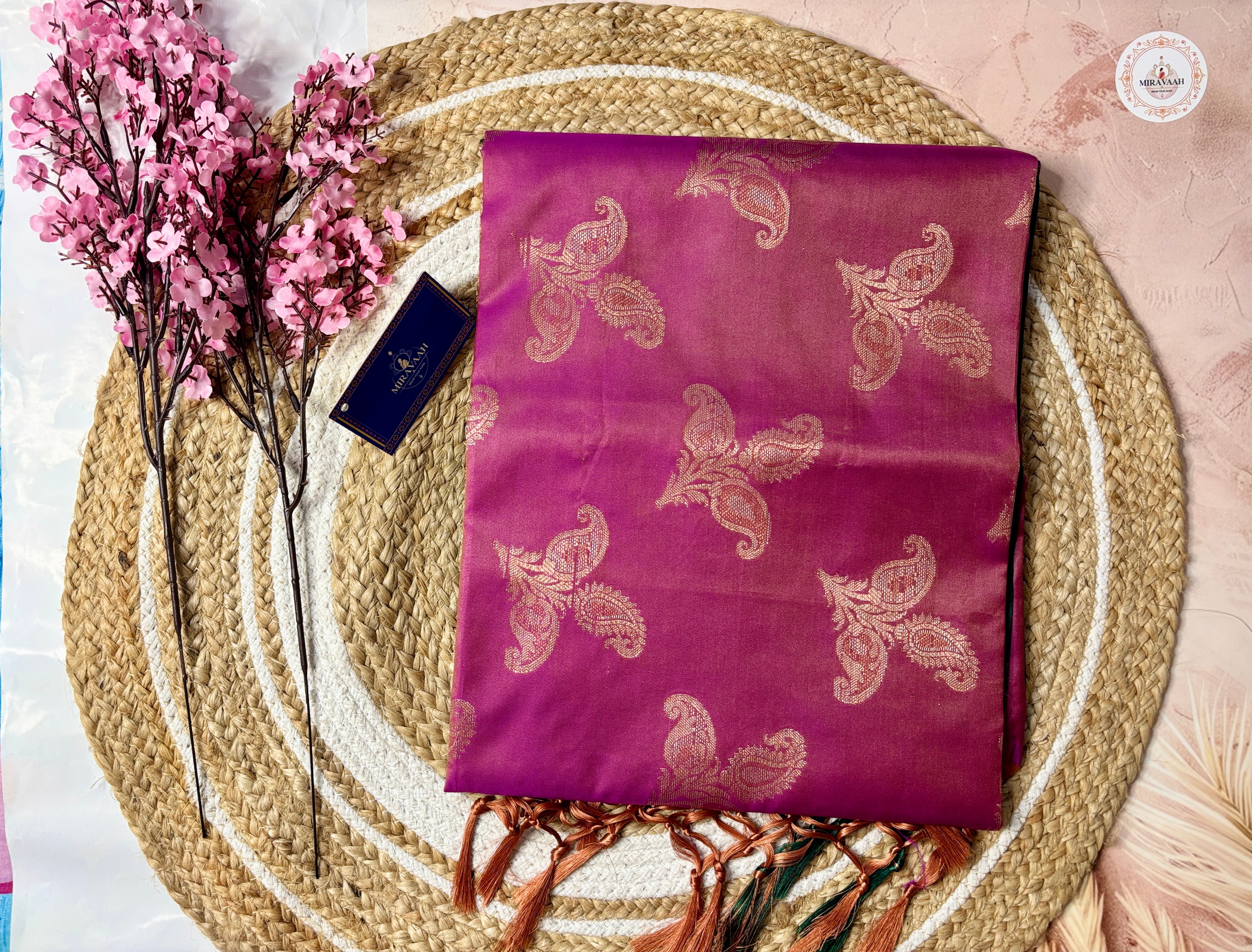 Mauve Pink Banarasi Silk Sareen with Zari Border