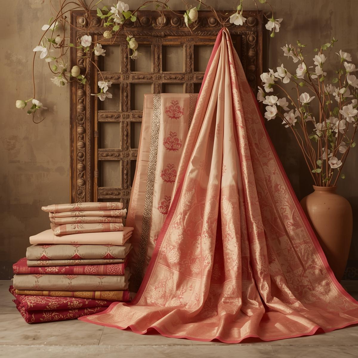 Surkhya Premium Red Pashmina Zari Silk Saree